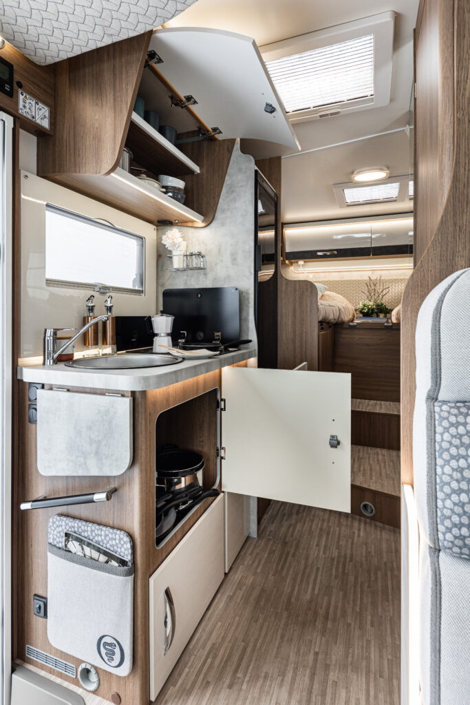 Capacitatea rezervorului de apă curată este de 120 litri, iar rezervorul de apă uzată are o capacitate de 100 litri, ceea ce asigură independență și autonomie pe drumuri mai lungi, fără a fi nevoie de opriri frecvente pentru reumplerea sau evacuarea apei.