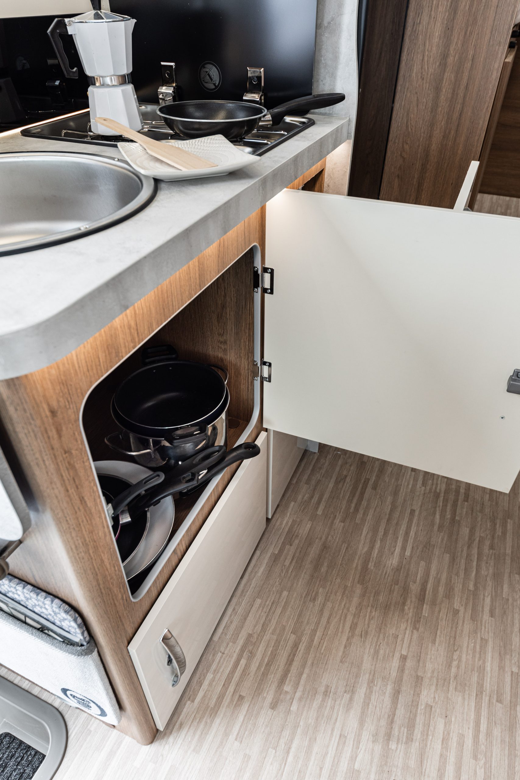 - Pardoseală din PVC rezistentă la uzură, pentru o siguranță sporită în timpul călătoriilor.