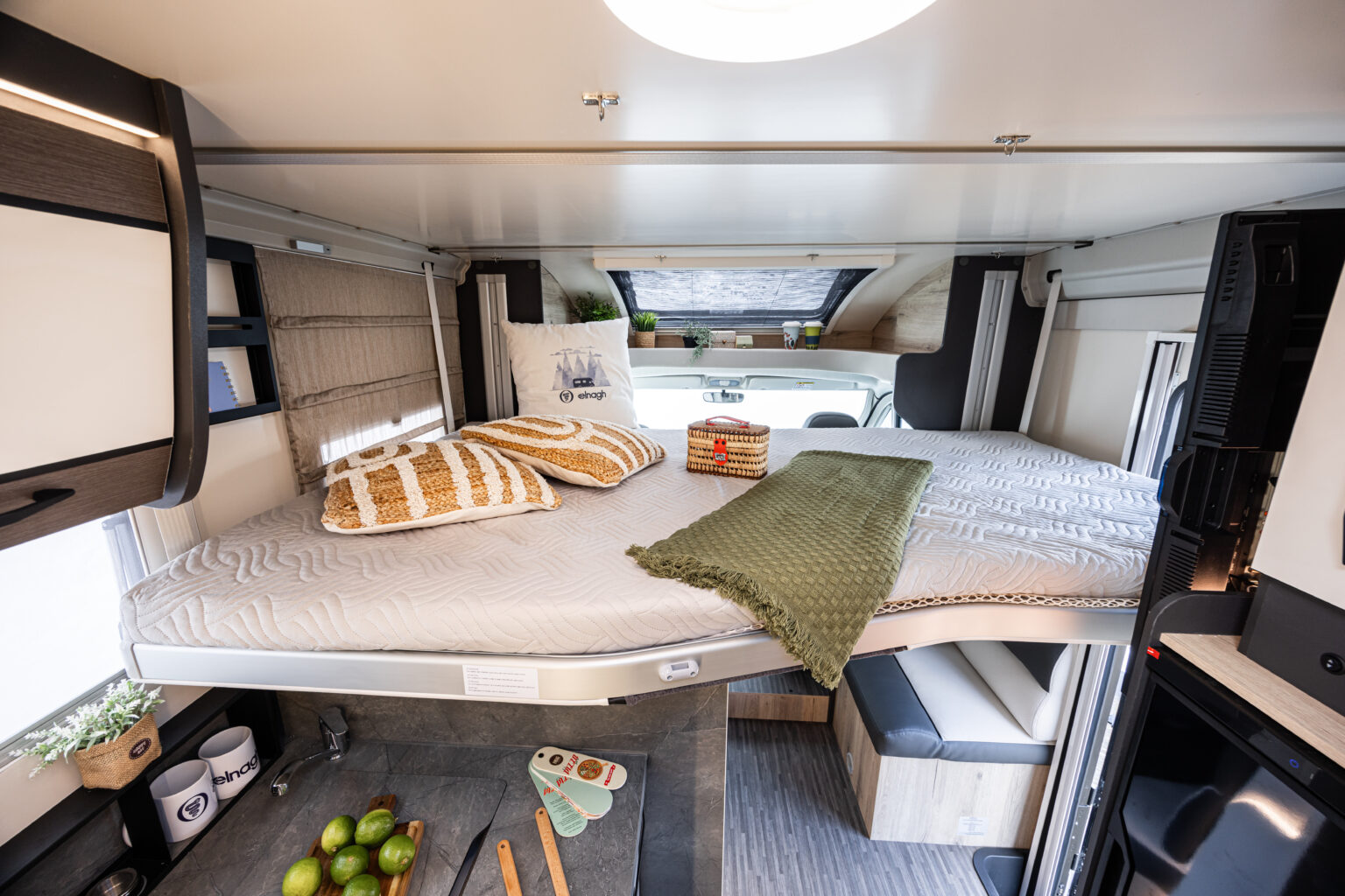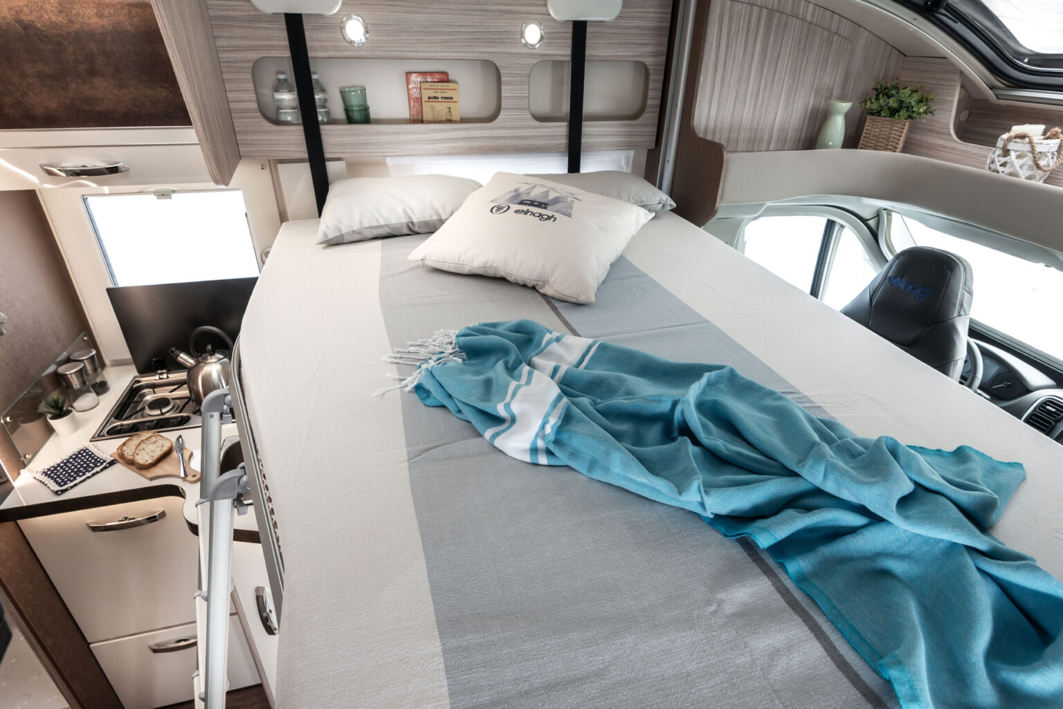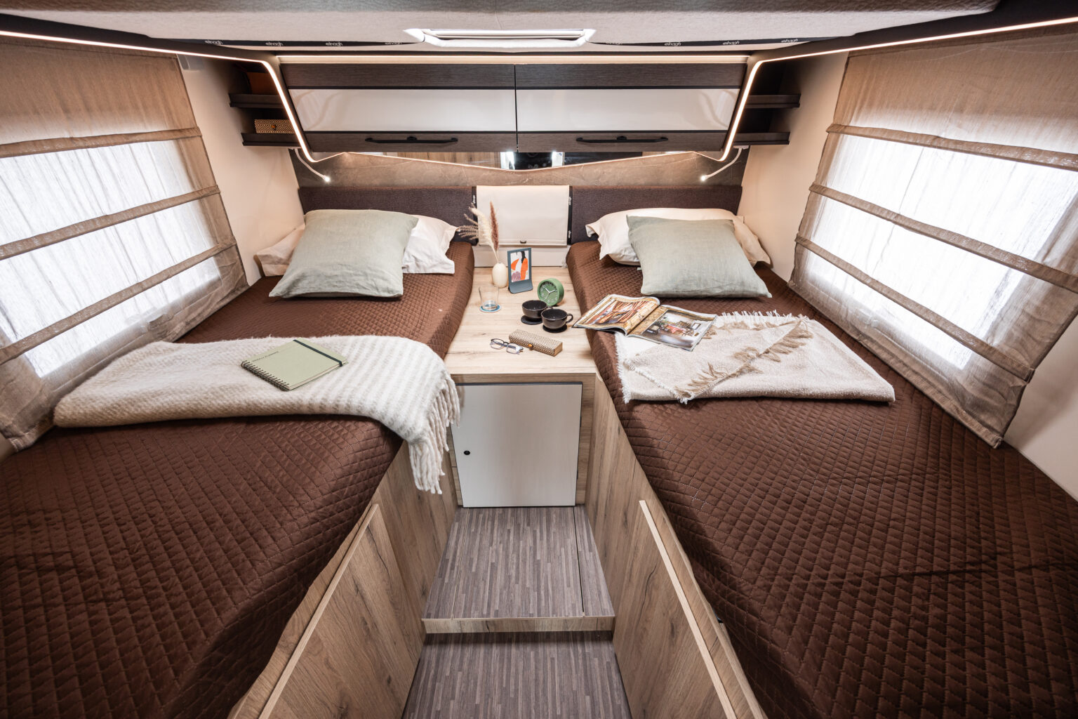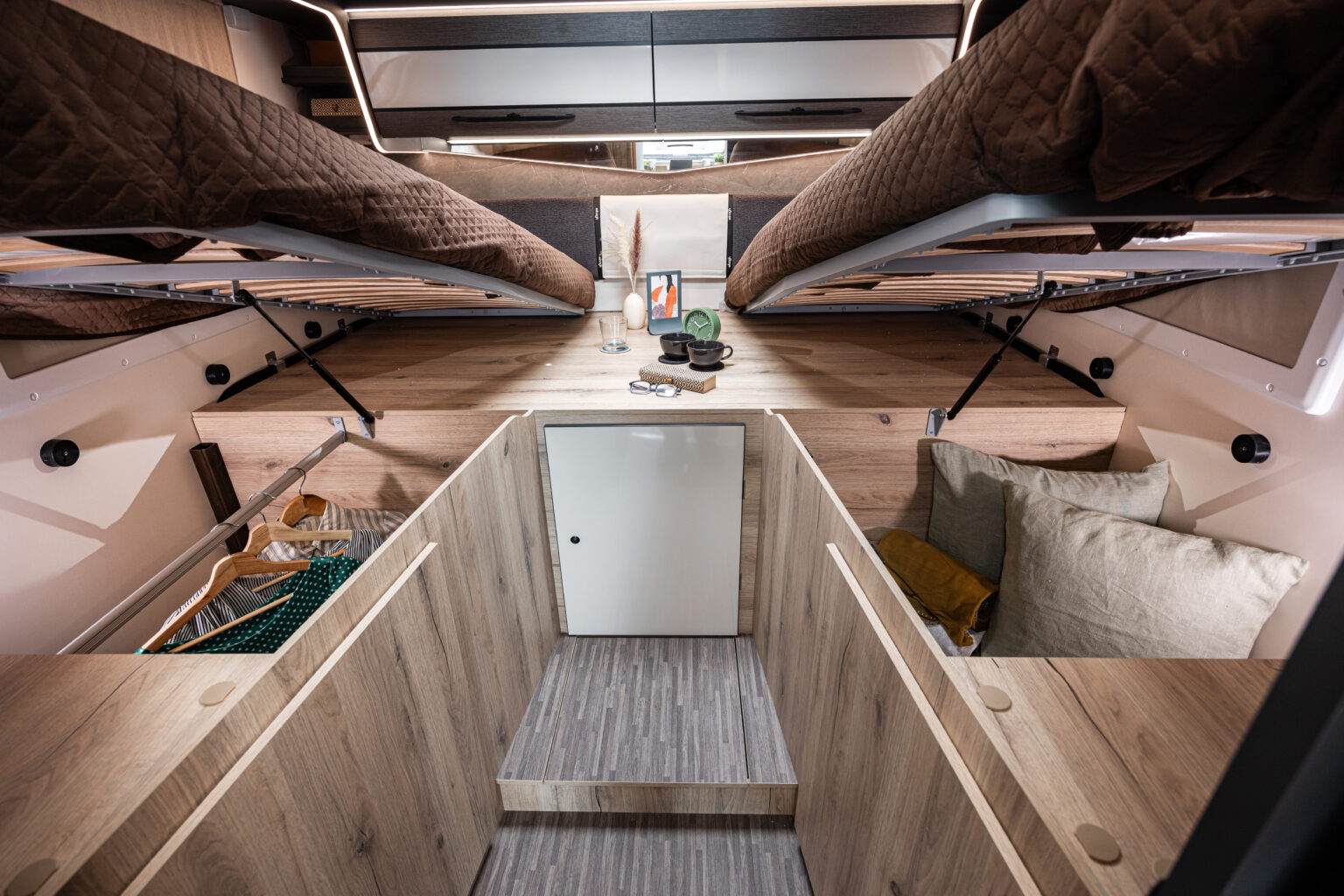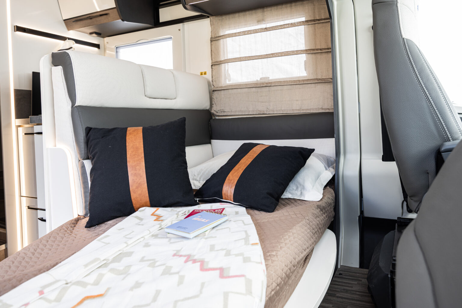 De asemenea, patul auxiliar din dinetă și patul rabatabil de deasupra oferă spațiu suplimentar pentru odihnă.