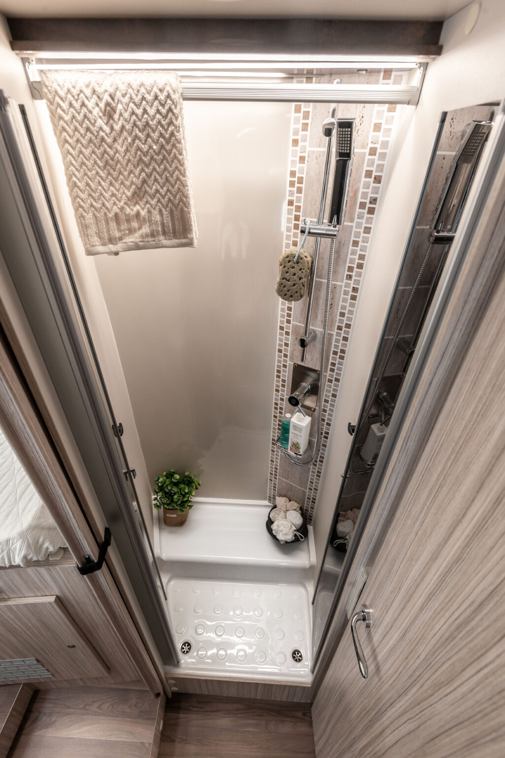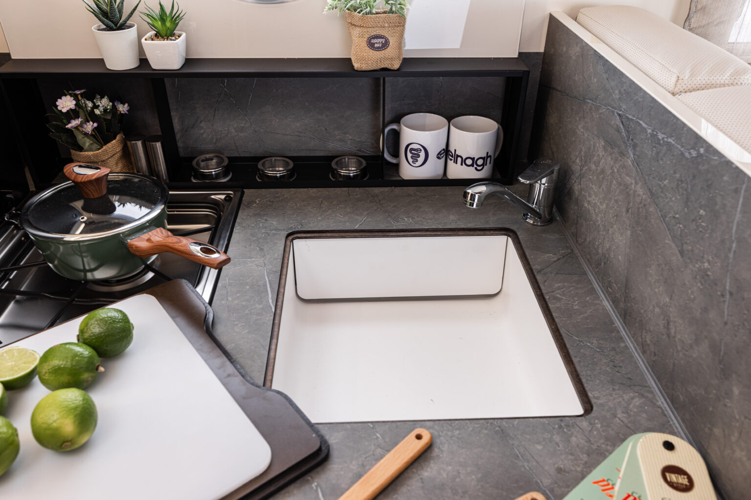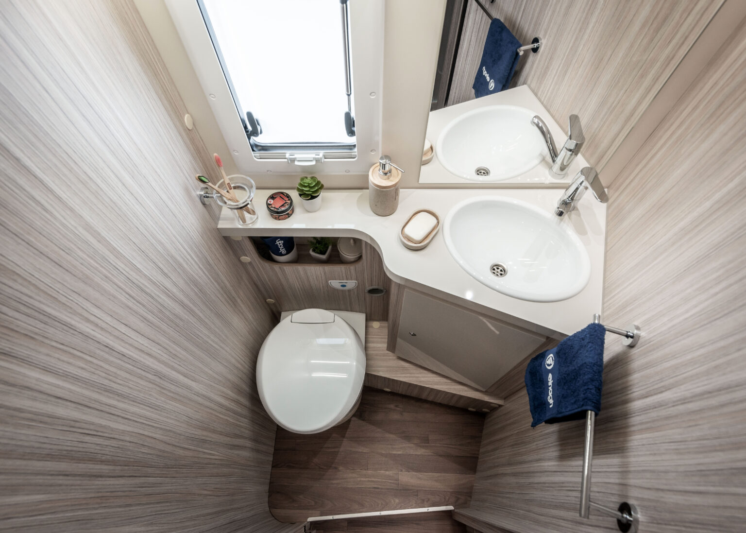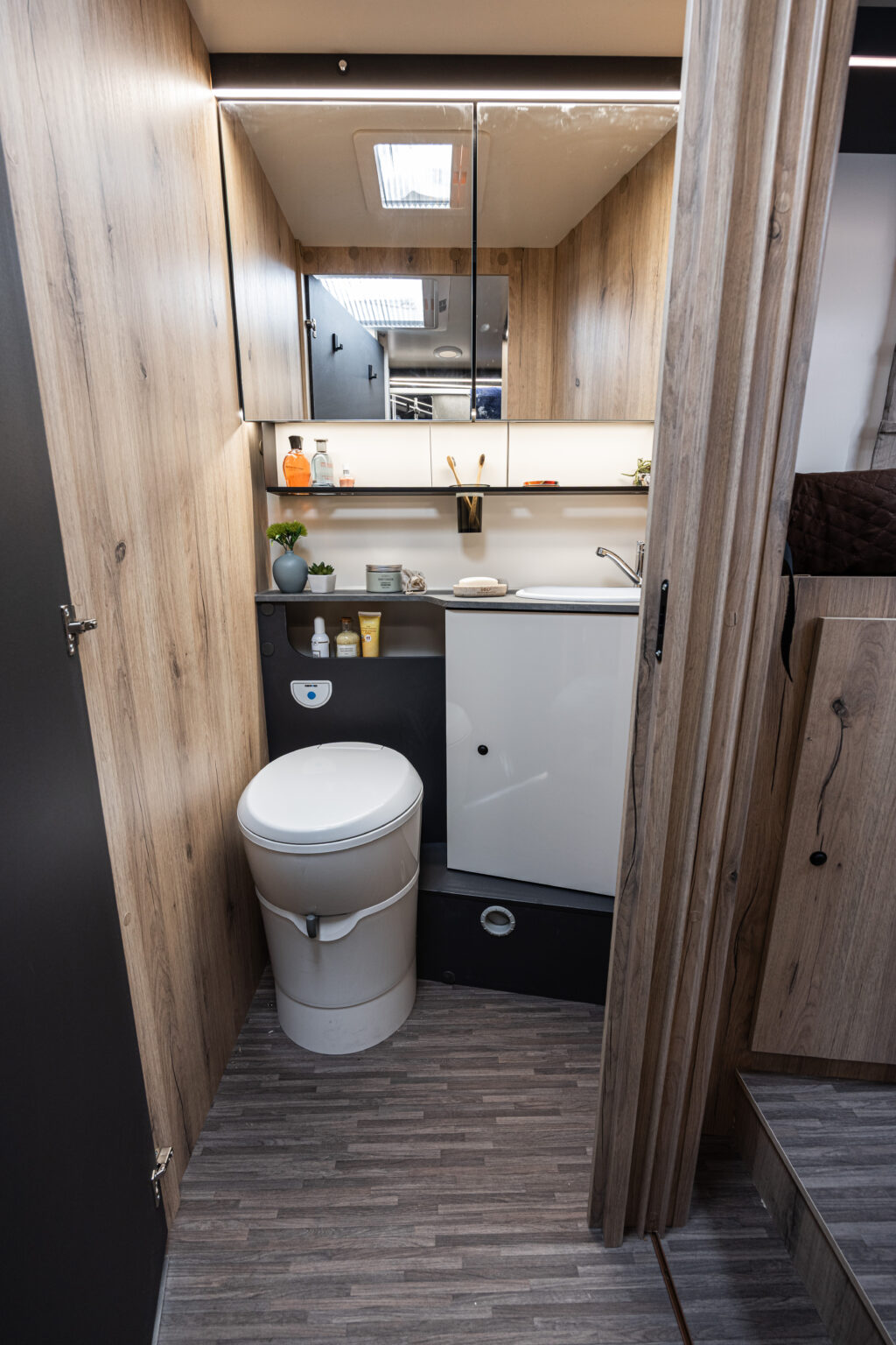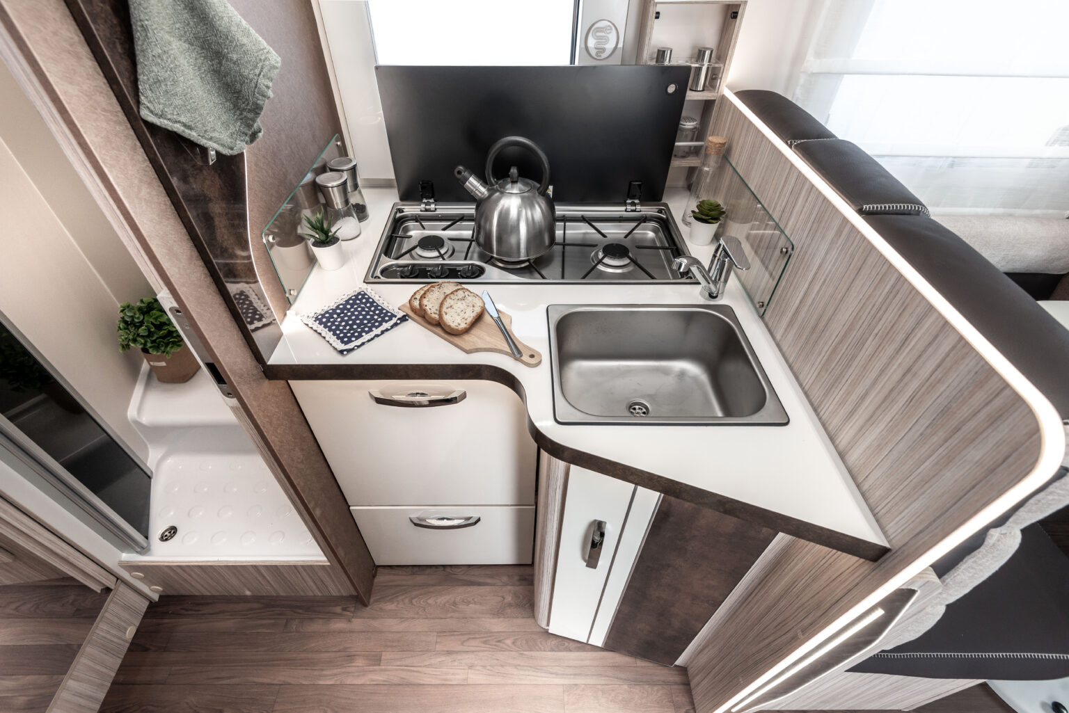 Spațiile interioare sunt optimizate inteligent, oferind 5 locuri omologate și 5 locuri de dormit, ideale atât pentru cupluri, cât și pentru familii numeroase. Atmosfera este caldă și primitoare, datorită tonurilor elegante și finisajelor lucioase aplicate pe mobilier. Profilurile LED și mânerele cromate adaugă un plus de rafinament.