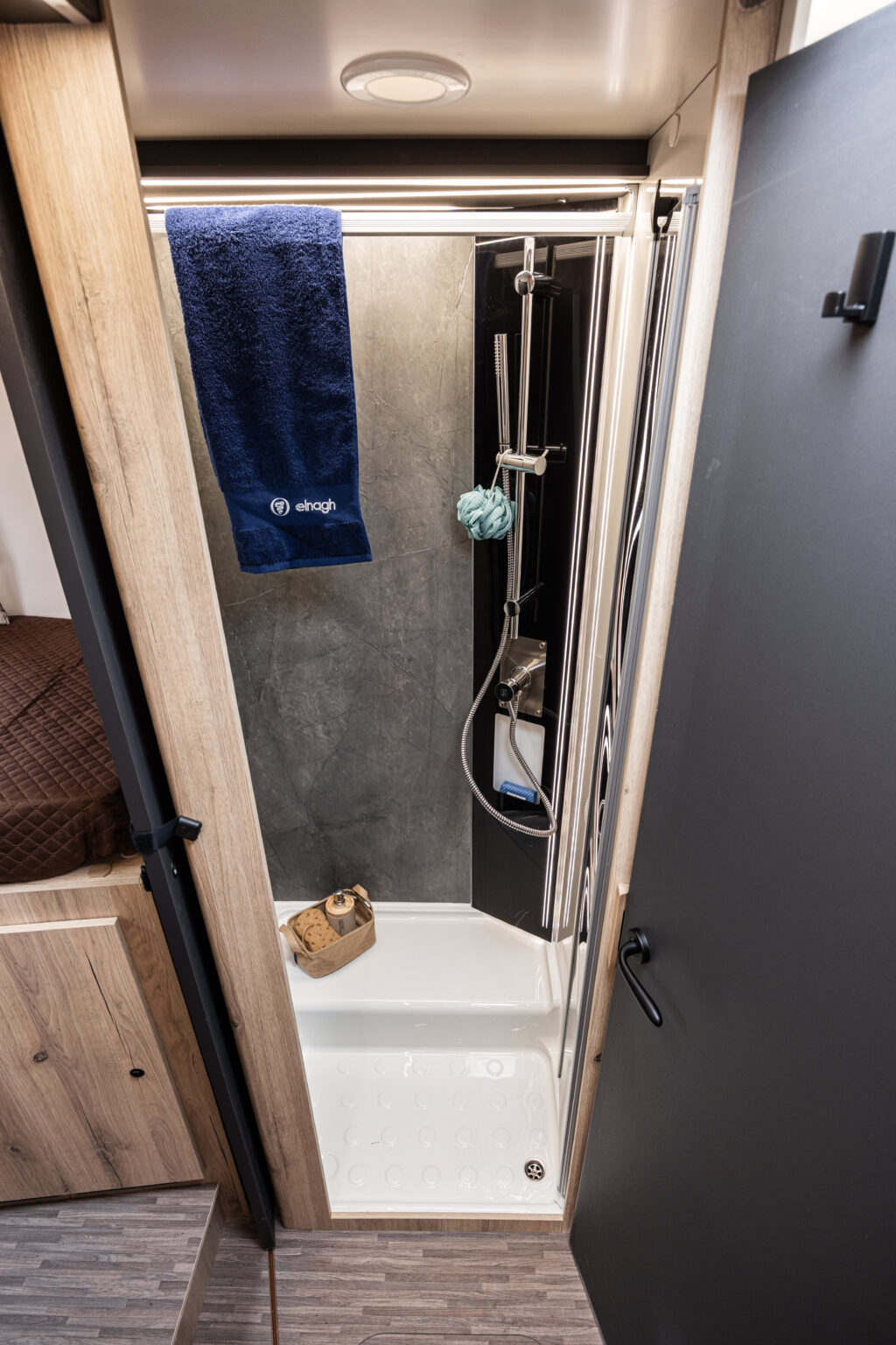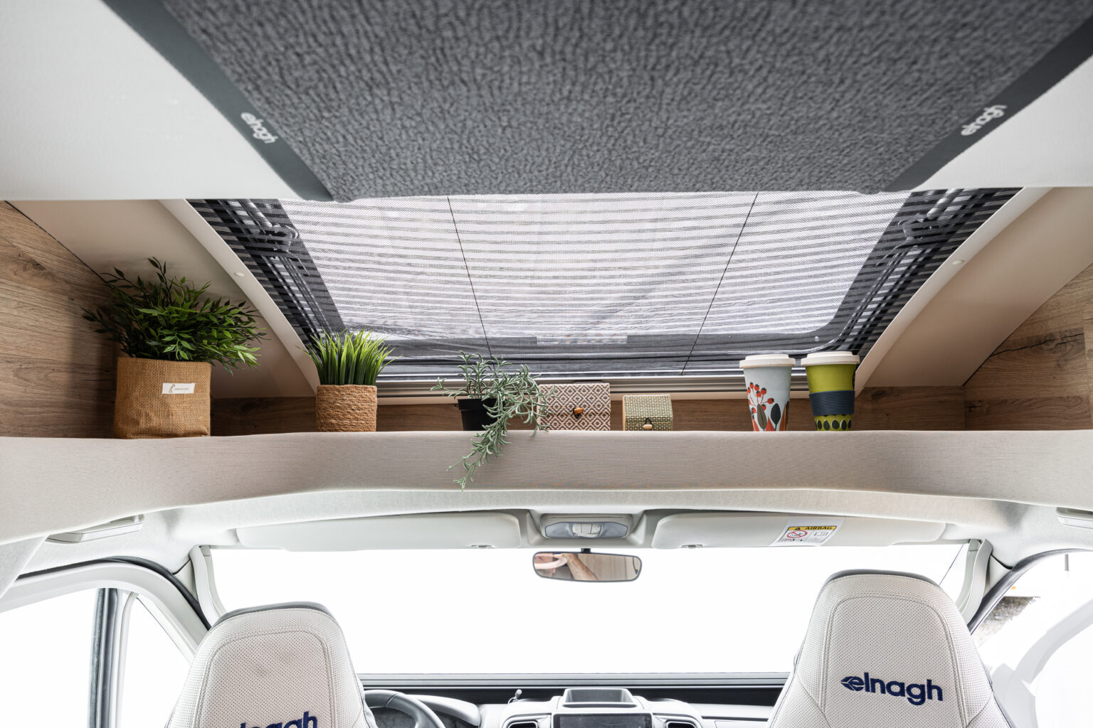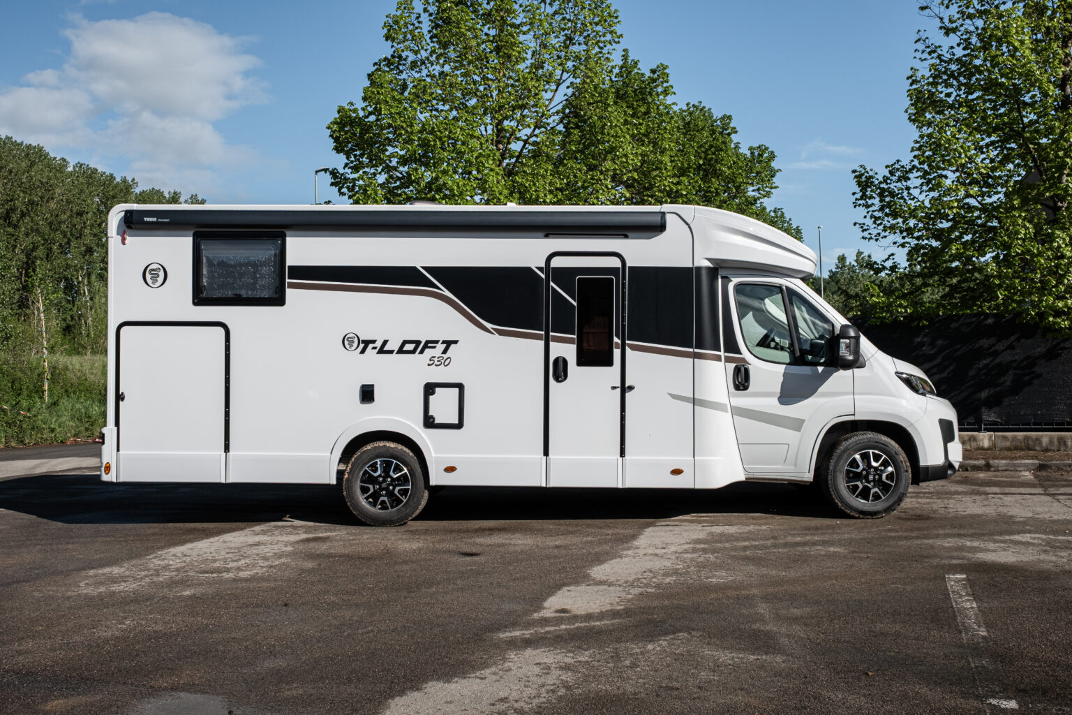 Cu o lungime de 7,45 m și o lățime de 2,35 m, Elnagh T-LOFT 530 oferă un echilibru ideal între dimensiuni și spațiu interior generos. Dotată cu ușă XL cu geam fix și plasă anti-insecte, precum și cu skylight panoramic de 1000×800 mm, autorulota oferă lumină naturală din abundență și un ambient aerisit.